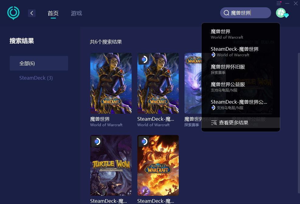 步骤1:在UU中搜索《魔兽世界》