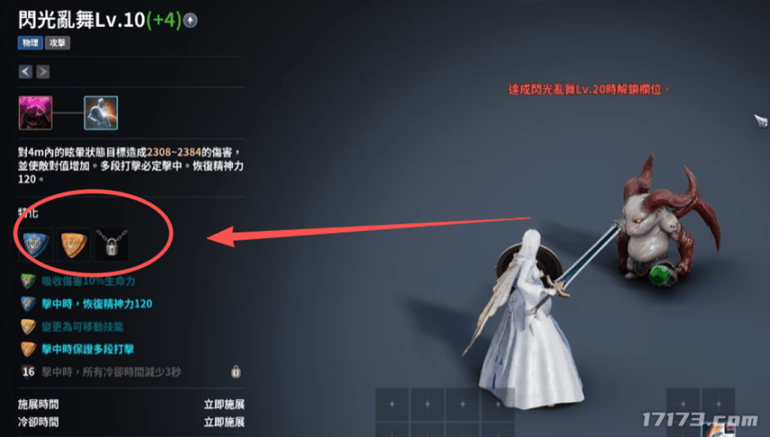 而在技能达到一定等级后,玩家还能选择附加的特化效果,赋予技能更强的效果,或改变技能形态。