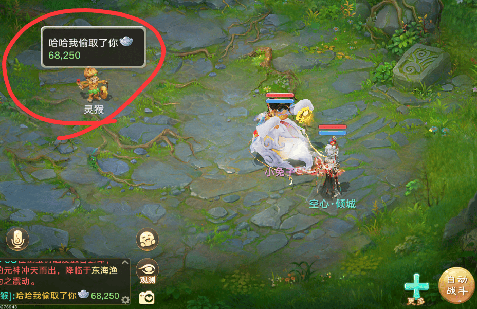而银两多的玩家,可以携带至少5000万在身上,吸引猴子高额偷取,然后在7-9回合高额偷取之后,下一回合再攻击他,战斗最多50回合,你也可以自己博弈计算一下。