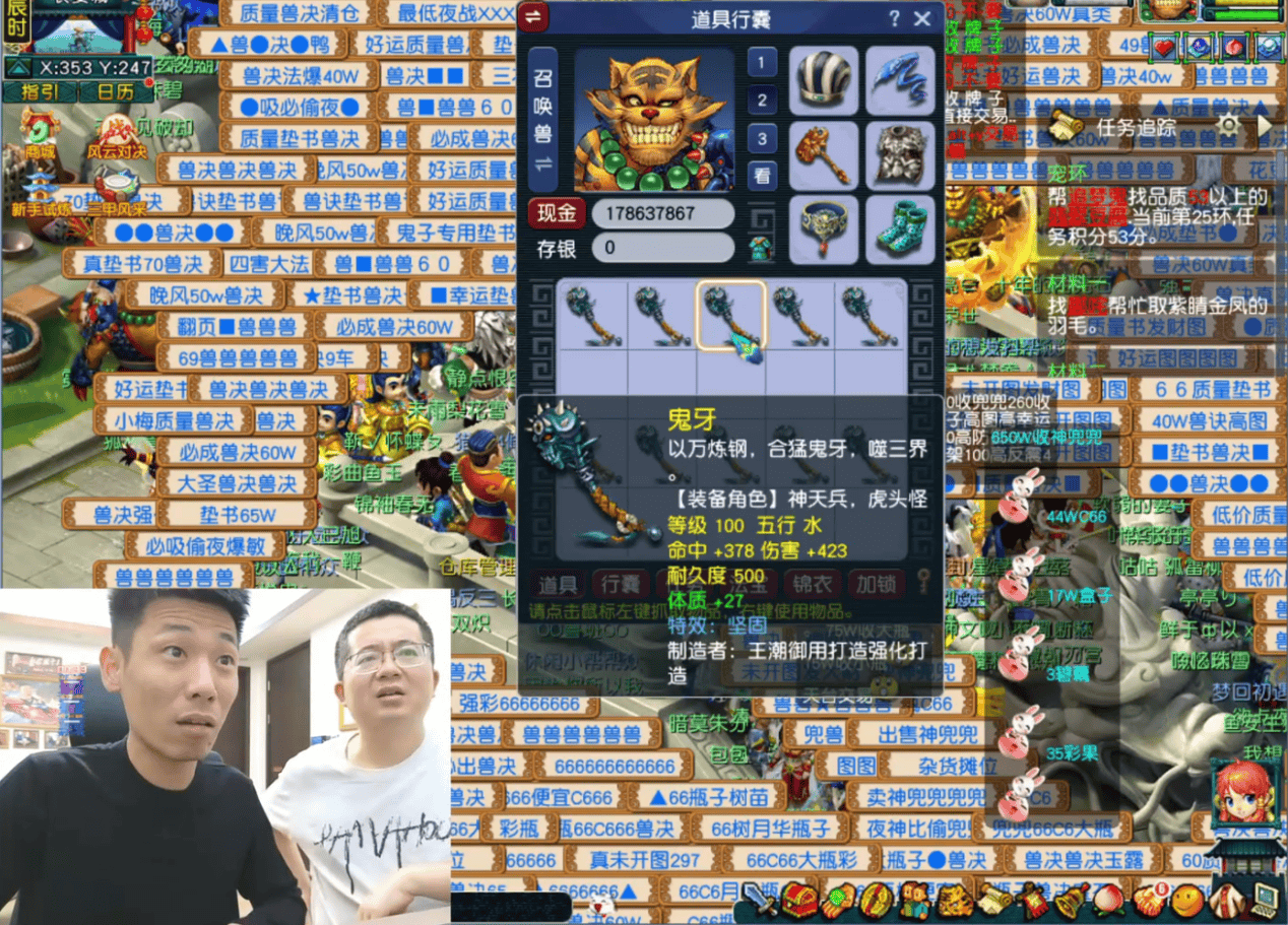生日会第二天,风少携手卢姥爷,在建邺城开启一场装备鉴定直播。卢姥爷运气火热,先后鉴定出一把130级玄鸟双剑与一双140级伯牙绝弦鞋子,两件均为PK中实用的小特技装备。