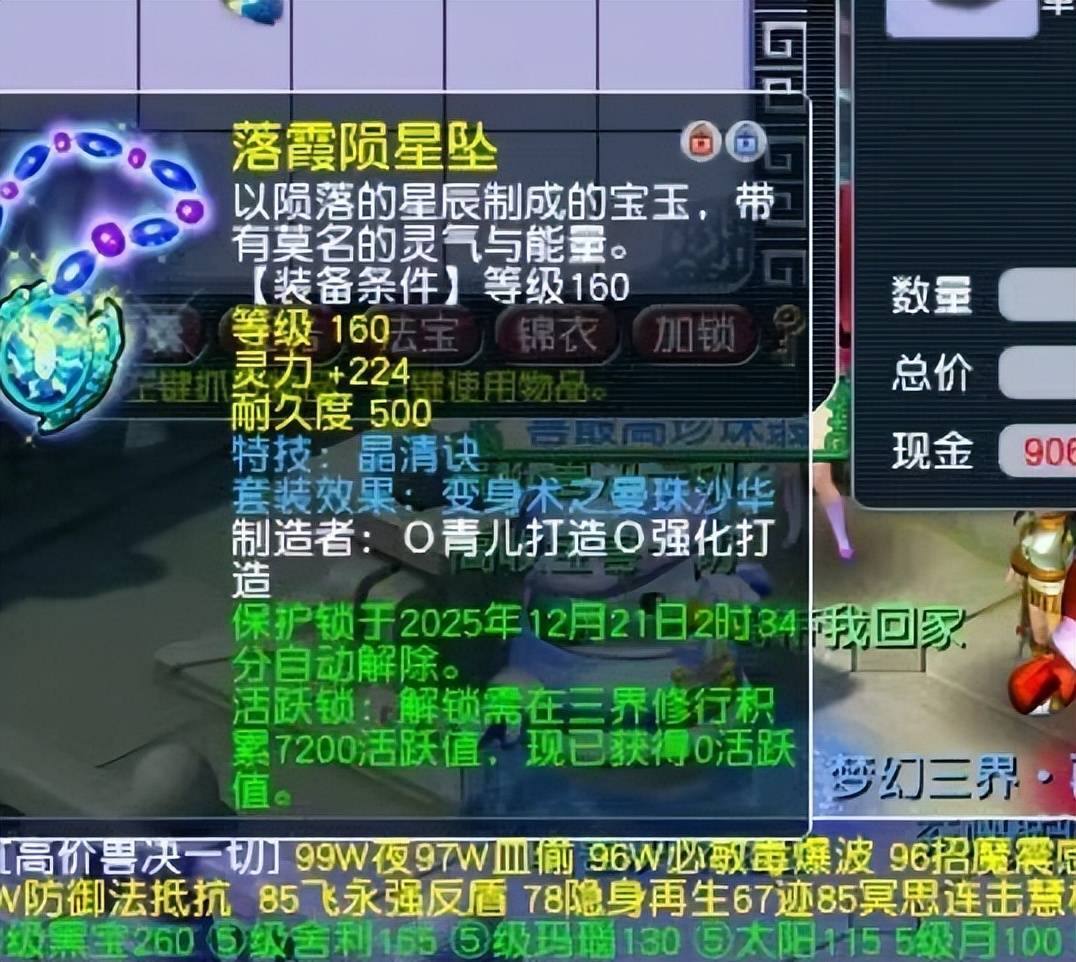 在幻化出极品项链元身后,这位玩家选择亲手追梦,结果一发入魂,竟打造出初灵高达224的晶清项链!经熔炼与镶嵌舍利子的加持后,这项链的法防属性将大幅跃升,堪称高端玩家冲刺冠军的关键拼图。