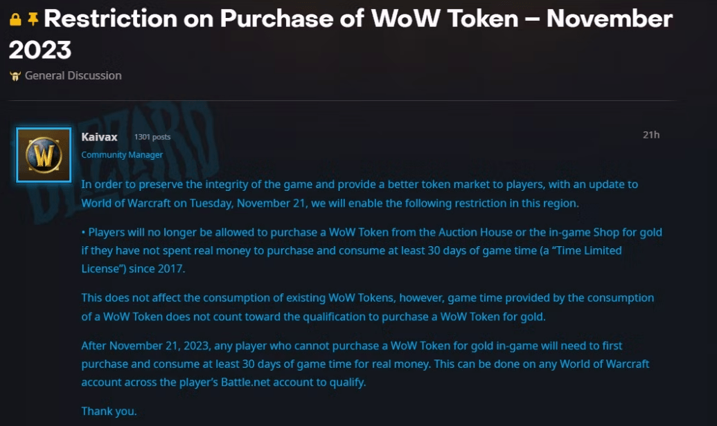 《魔兽世界》时光徽章系统迎来重大改革,根据社区经理Kaivax的蓝贴消息,从11月21日开始,没有消费记录的新号将不能购买时光徽章,具体需要在2017年之后至少真金白银冲过一次月卡。