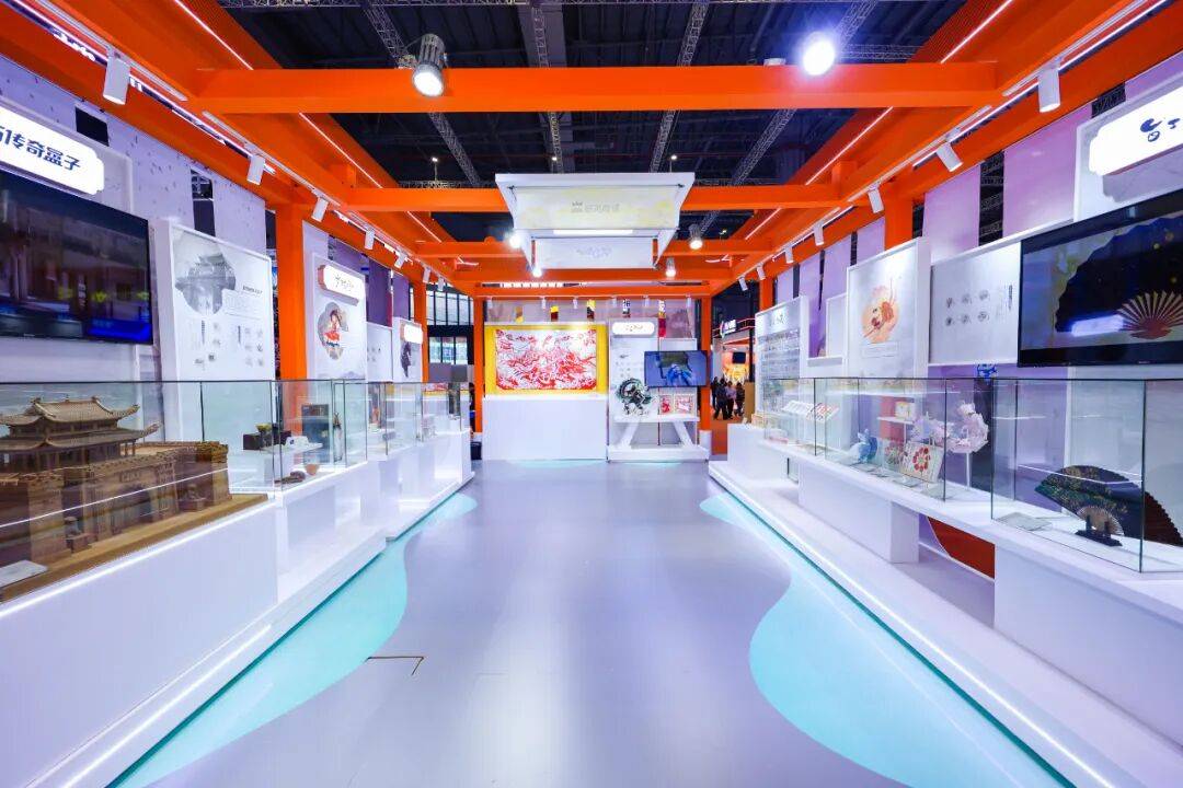 配合这些珍贵的非遗文化展品,恺英还颇具匠心地将展台打造成了一个“国风博物馆”。