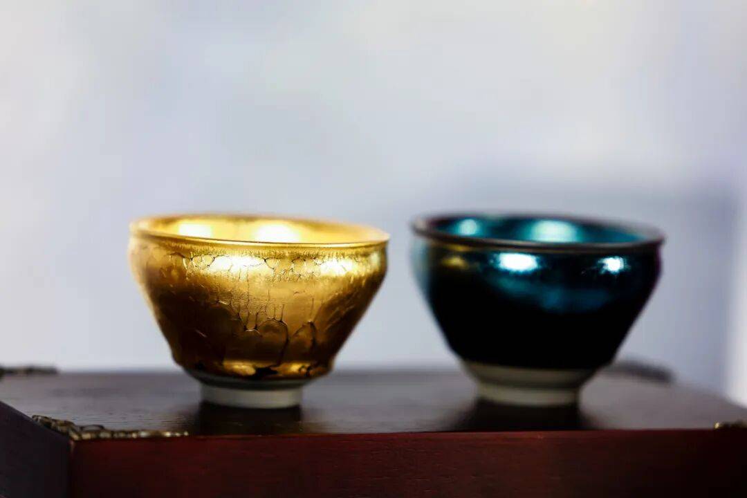 具体到盏的花纹选择上,团队挑了代表“攻沙”传奇的金色,也就是“金油滴”这个纹样,它既有尊贵感,又不失时尚。另外还特别加入了一个蓝色的麒麟纹路,这样就和“蓝月”的IP元素直接呼应上了。