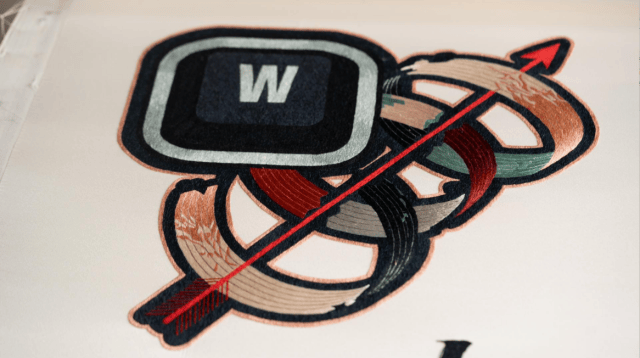 比赛最引人注目的当然是过五关斩六将,从全球各赛区脱颖而出的8支战队了。官方非常贴心地为每支战队都准备了一面战旗。说到这里就值得“浓墨重彩”了:这些战旗都由苏绣大师亲手绣制!