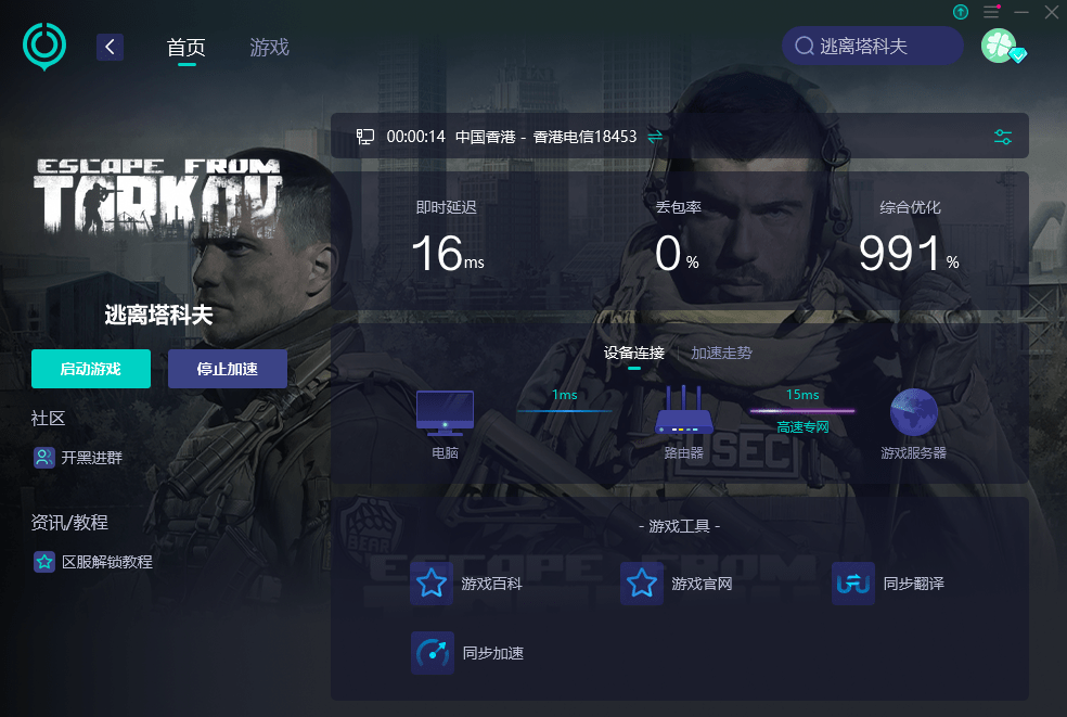 第二、启动获取稳定网络连接,畅玩《逃离塔科夫》