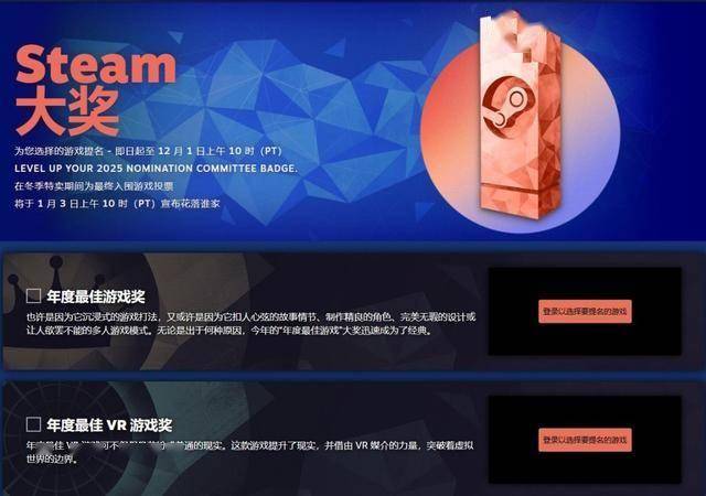 2025年Steam大奖奖项设置: