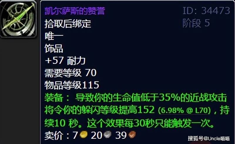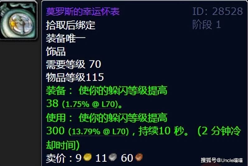 卡拉赞再有的无解饰品就是怀表了,就对于躲闪这一属性的加持,他堪称版本最无解了,喵叔愿称他为贯穿TBC的最强生存饰品,就问问各位大兄弟服不服?
