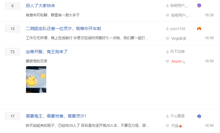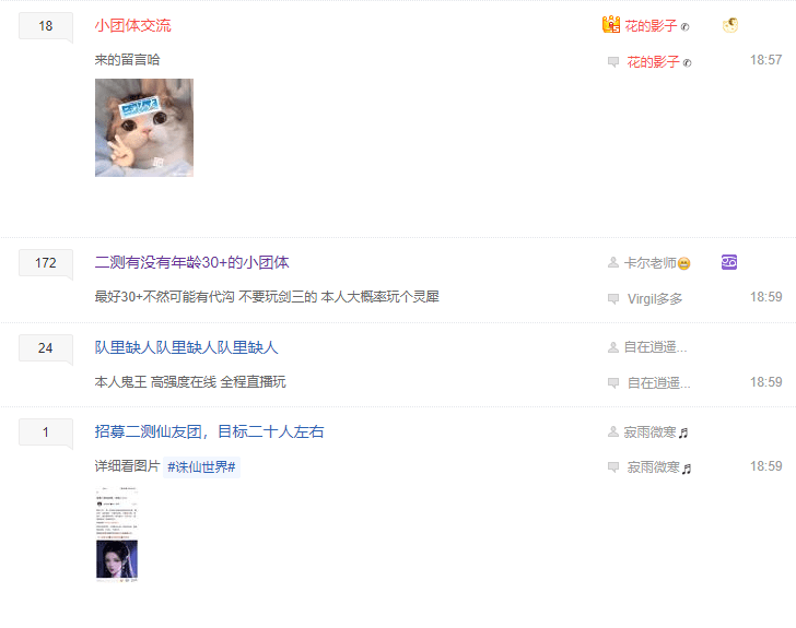 现在进入到《诛仙世界》的贴吧,就能够看到铺天盖地的招募贴。有固定队招募特定职业的,有大工会招募亲友团的,有开荒攻坚队招募打手的,最离谱居然还有固定年龄的车队。有工会专门招募30+以上年龄的玩家,理由居然是怕年纪小了怕沟通有代沟。虽然看上去很奇葩,但也不难感受到《诛仙世界》这款游戏的玩家受众还是相当广的。