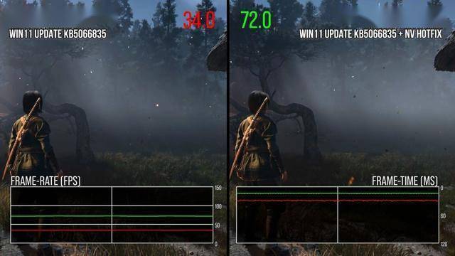直到英伟达最近发布GPU热修复驱动,直接针对KB5066835漏洞进行修复后,我们才开始关注此事。英伟达在给用户的说明中指出,此次10月份的补丁是导致Windows 11 24H2和25H2版本出现问题的原因,并表示这可能会导致“某些游戏”的性能下降。