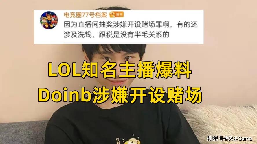 电竞圈77号档案发文表示:大主播跑路,不是因为税的问题,而是直播间抽奖,涉嫌开设赌场罪,虽然没有指名道姓,但一众主播都即将回归,仅有Doinb一人没有消息,而且本身就是LOL博主,爆料的肯定也是LOL相关详细,因此他所指的大主播,毫无悬念是Doinb本人。