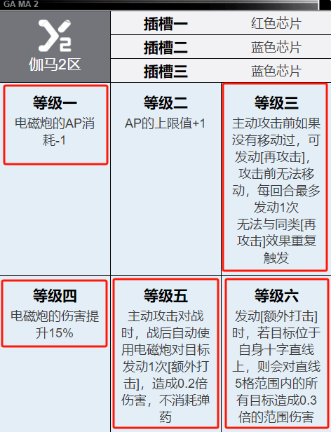 然后洛莎伽马2区中的重点质变效果维一都用红色框框给标注出来了,其中有4个都是聚焦电磁炮方面的,算是在这里给电磁炮补充了一些颜面。