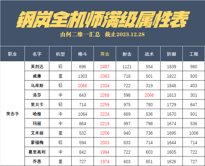 首先我们来看洛莎的属性,由于“双修”的特点,洛莎的突击属性在4位S突击手中排名末次,而同样是双修的马库斯则要比洛莎高了将近70点的突击属性,而有趣的是马库斯双修的格斗属性与洛莎双修的战术属性则都为2066,其余属性则是马库斯全面胜过洛莎,甚至大家看的更细点便会发现,洛莎除了战术属性能够占优外,其余所有属性都是4位突击手中最低的......所以客观说洛莎是一个在属性上并没有占到任何优势的角色,相反倒是吃尽了属性上的亏,这和看板娘的地位是否又完全相符呢?大家也可以思考一下这个问题。