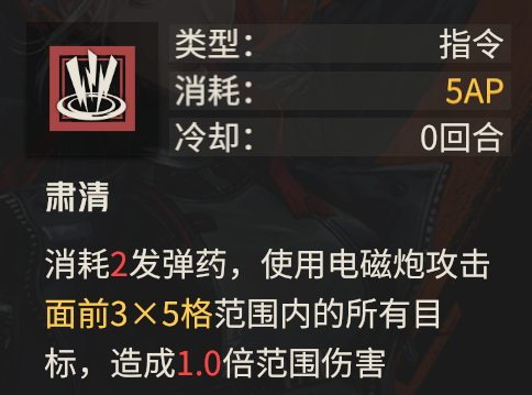 此外针对【肃清】这个技能如何在第1回合就直接使用的问题,有一个办法,开服后官方不是送了个突击角色升潜能的道具么,大家如果给洛莎用就是初始4AP了,然后等到后续伽马2区开了后电磁炮的技能AP会-1,那时候就可以直接第1回合用【肃清】了,否则就需要高潜能才能支持。