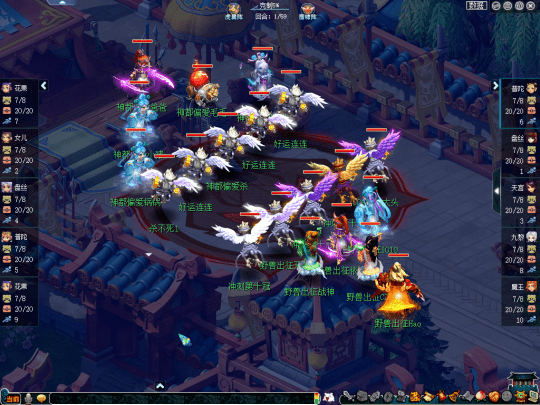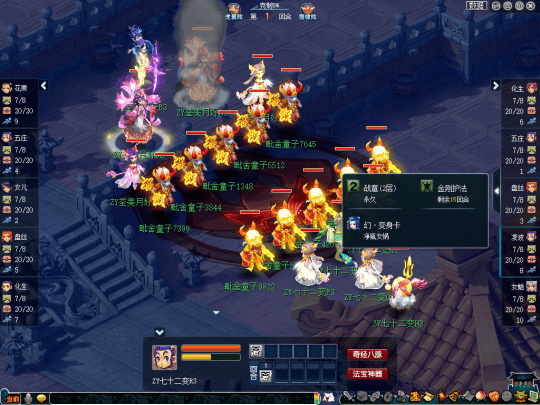 随后,曲阜孔庙抓住机会,在57回合成功点掉紫禁城武器的女儿村,令其无法限制阴曹地府的灵宝。点掉女儿之后,曲阜孔庙火力全开,依靠大唐官府和多轮谛听的输出,击败了紫禁城服务器,成功拿下武神坛冠军。