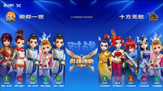 在2023年7月举办的群雄逐鹿决赛中,俯仰一世战队采用了由“五庄、女儿、双神木、普陀”组成的“212”面伤阵容,十方无敌战队选用了由“五庄、打蓝盘丝、化生、女儿、咒师普陀”组成的“多封打蓝”阵容。