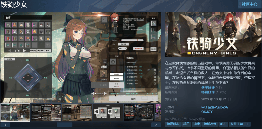 而中子星游戏研究所另一款少女射击游戏《铁骑少女》发布于2023年10月21日,在Steam获得88%好评,VG insights显示销量达5.5万。