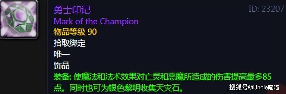对于这款饰品,喵叔可以拍着胸脯说这是第一次盘,纳克萨玛斯克尔苏加德护符匣奖励获取,他的无解之处就是坐拥版本最高的85点常驻法伤,不过仅针对亡灵和恶魔怪,当然这基本上算不上问题,因为在纳克萨玛斯这样的团本,你想找一个非亡灵与恶魔的怪都难!像暗牧、术士这种后期拿了也是非常炸裂的加持了,不知道各位兄弟有没有体验过!
