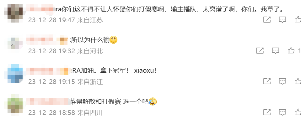不过事实上过去几届德杯也不乏LPL战队输给主播队的情况,比如21年德杯JDG、TES以及WBG都曾输过主播队,22年德杯FPX也输给过主播队MOJ,但如此戏剧化的方式输掉比赛,让RA难免成为被嘲讽的对象。输掉比赛后RA的官博也直接沦陷,被不满的粉丝、观众怒喷。