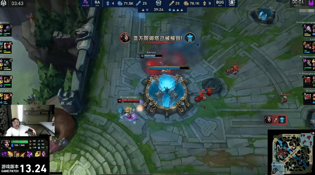 而在大龙坑附近的拉扯过程中,RA甚至5打4都险些输掉团战,最后甚至让xiaocaobao的妖姬完成偷家。就连二路解说这场比赛的水晶哥、Ning王都感到不可思议,更别说看完这场比赛的观众更是直呼离谱。