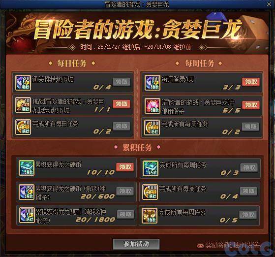 活动期间,每日可以进行一次冒险者的游戏