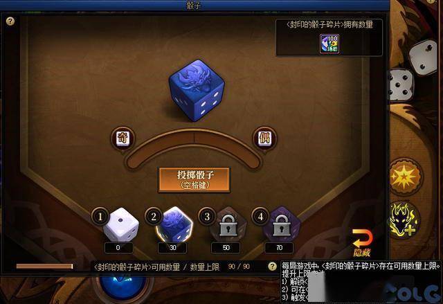 基础骰子免费(1~6点均等概率),有特定效果的骰子消耗碎片,碎片可以通过每日推荐地下城以及活动任务获取