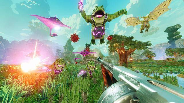 ·《Slyders》有着卡通渲染的画面,以及无数蜂拥而至的敌人,儿童玩家则有着海量的各种枪支武器应对,比起《无主之地》的漫长故事线设定,本作更偏向快节奏的短平快玩法,一局战斗15分钟左右让玩家杀个爽。