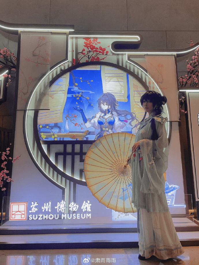 “人间朝暮,叶落姑苏,水巷小桥,梦中江南。”COS阮·梅的女玩家着实不少的同时,还开始在博物馆内吟诗作对,为这次阮·梅和苏州博物馆的联动增添了大量的色彩,也惊艳了无数前来参观的玩家和游客们。