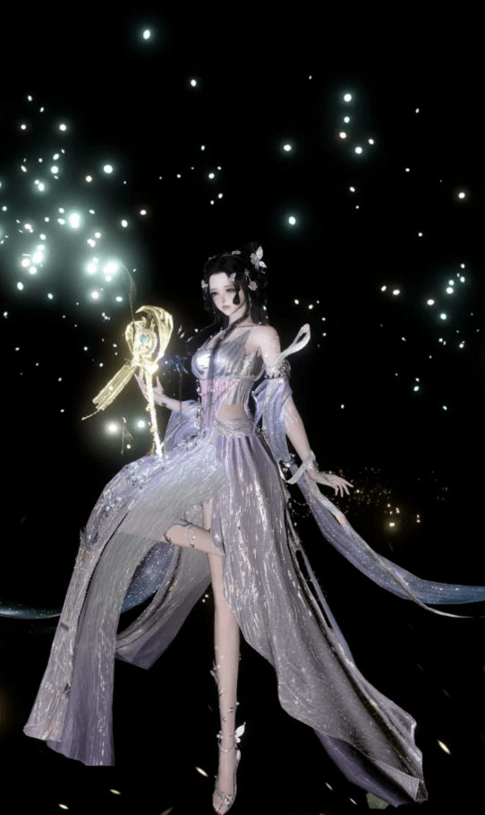例如下面这位玩家身着长裙,裙摆轻盈如薄纱,仿佛云朵般飘逸。她眼神坚定,宛如一位缪斯女神。还有玩家的每一个动作,都仿佛是在诉说着一个未被揭示的故事~