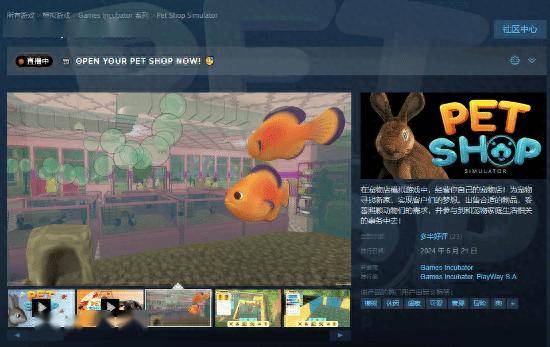 由Games Incubator开发,Games Incubator, PlayWay发行的经营模拟游戏《Pet Shop Simulator》现已在Steam平台发售。玩家在这款游戏里的职责不仅包括为动物们寻找美好的新家,还要确保它们能过上幸福的生活。游戏支持中文,现正进行首发优惠活动,优惠价为49.3元,7月6日截止。目前评价为“多半好评”,感兴趣的玩家可以点击下方地址查看。