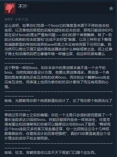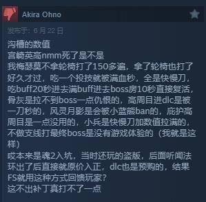 玩家给差评的主要理由是“敌人数值过高及攻击欲望过强,导致游戏难度过高”。不过,FromSoftware总裁兼《艾尔登法环》总监宫崎英高此前在接受英国《卫报》采访时回应了关于FromSoftware游戏难度问题时表示降低《艾尔登法环》的难度会破坏游戏。