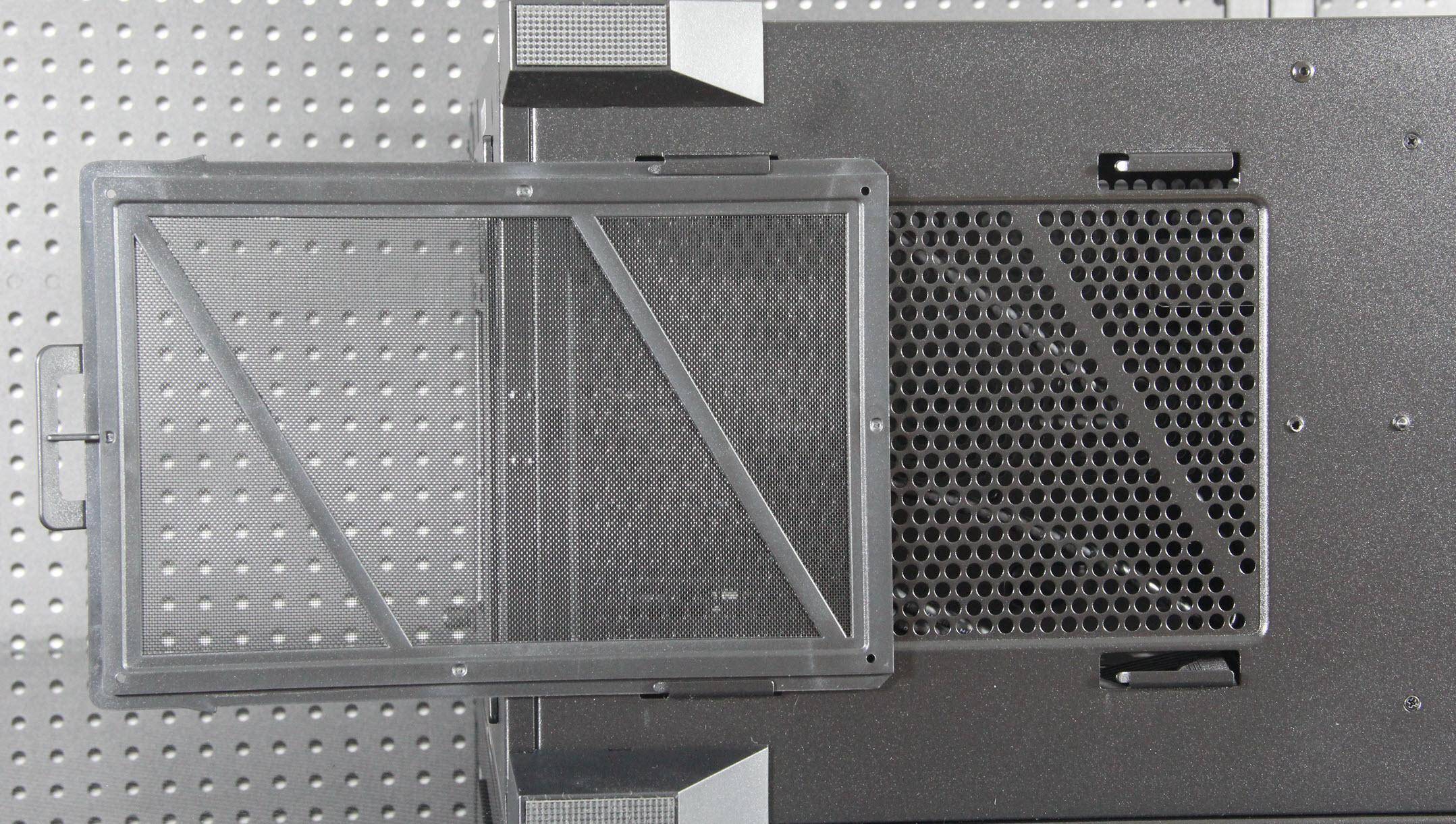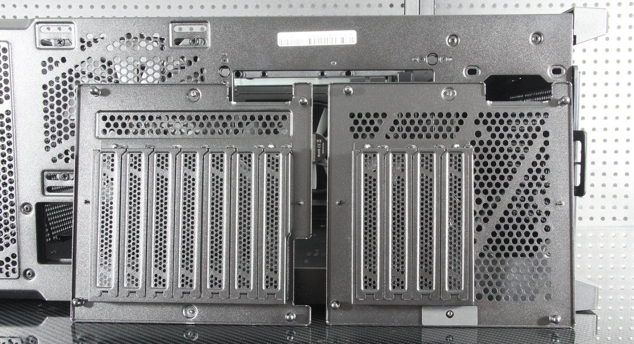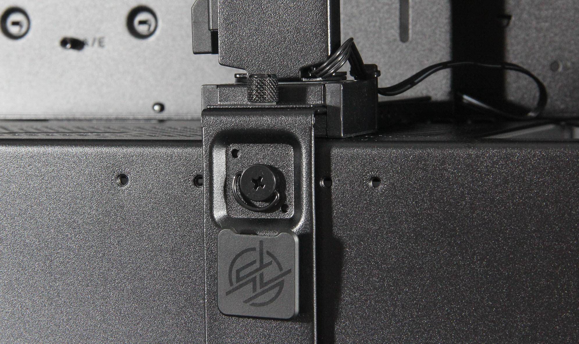 双挡板的更换就是松开拇指螺丝扣一下缺口就下来了,它采用了带紧固口的设计。氪金枪3机箱的散热性能表现出色。前面板和顶部设有通风口,支持前置和顶置风扇,而将替换的PCI挡板换上如果再装上两把60mm小风扇,一定散热更强。