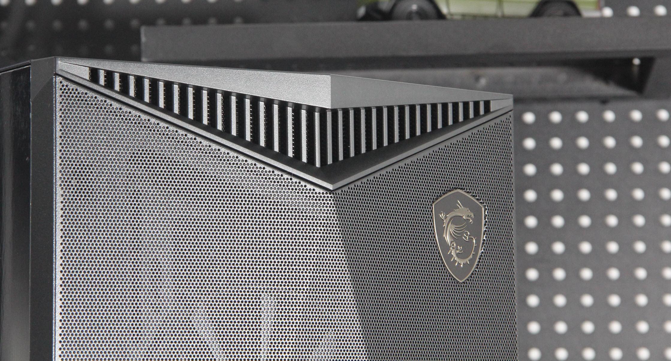 当我打开包裹,首先映入眼帘的是氪金枪3游戏主机那独特的外观设计。机身采用黑色金属材质,线条流畅,质感十足。与传统的游戏主机相比,氪金枪3的体积更加小巧,放在家中也不会占用太多空间。机身正面的MSI龙盾标志性LOGO,散发出迷人的科幻气息。当然我说氪金枪3是台游戏主机的确是言过其实了,实际上微星氪金枪3只是一台机箱,装上配置自然就成了游戏主机。