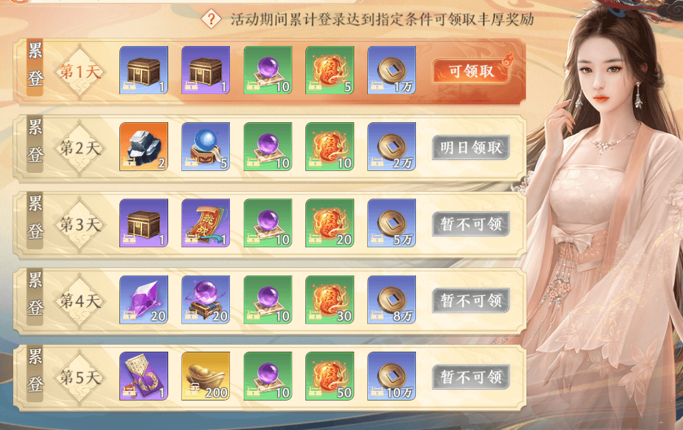 除此之外,登录新版本就能拿到400元宝(绑定),连续签到还能拿到武力丹、宝石自选和其他奖励等;玩家每周末登录,还能免费拿到超值道具,连续登录,还能领取意外惊喜哦~最重要的是,充值超划算,相当于花1份钱,不仅可以拿到多倍的返利,还能用充值的积分,兑换雪狐奔原(坐骑)和限时返场的蝶探夜昙(时装)等奖励,感觉送的东西都比买的贵!