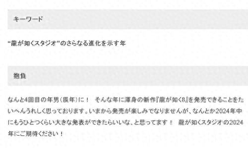 近日,日媒Fami通采访了数位日厂制作人,来自如龙工作室的横山昌义在展望2024时透露,除了会发布《如龙8:无尽的财富》之外,同年某个时候还将发布另一个“重大公告”。