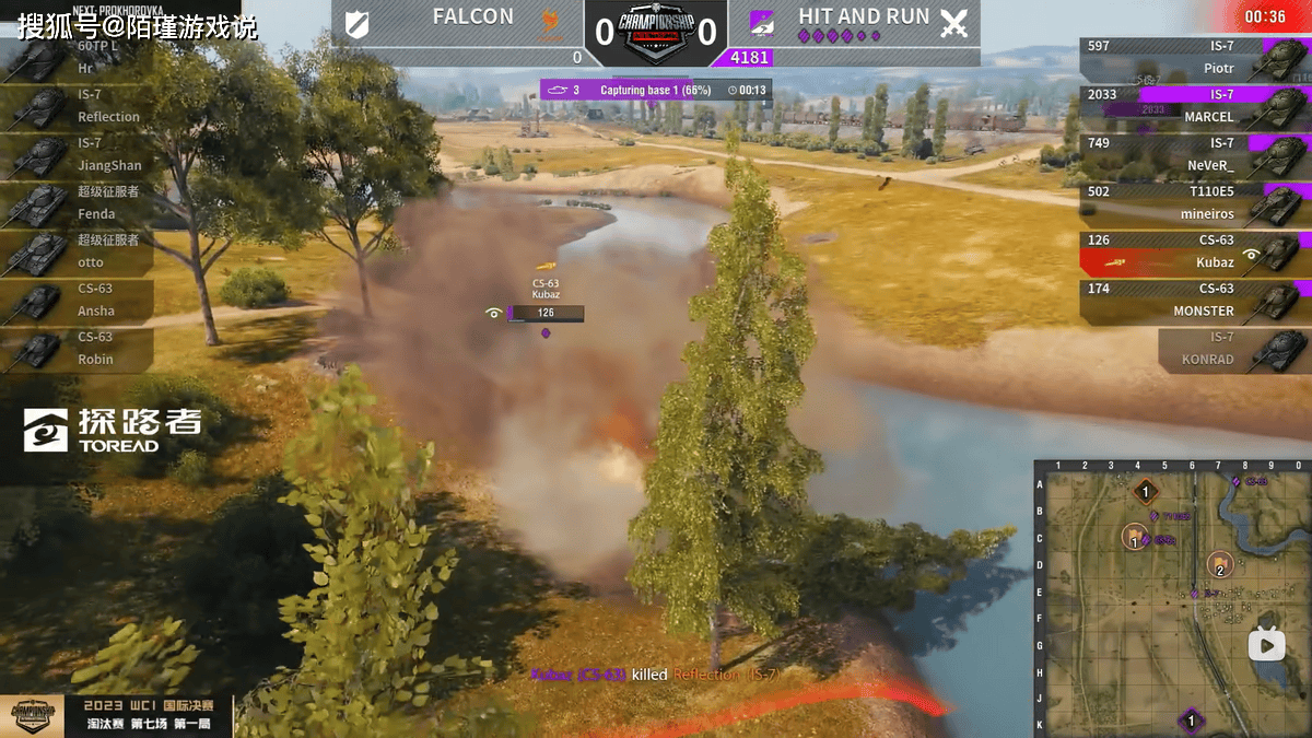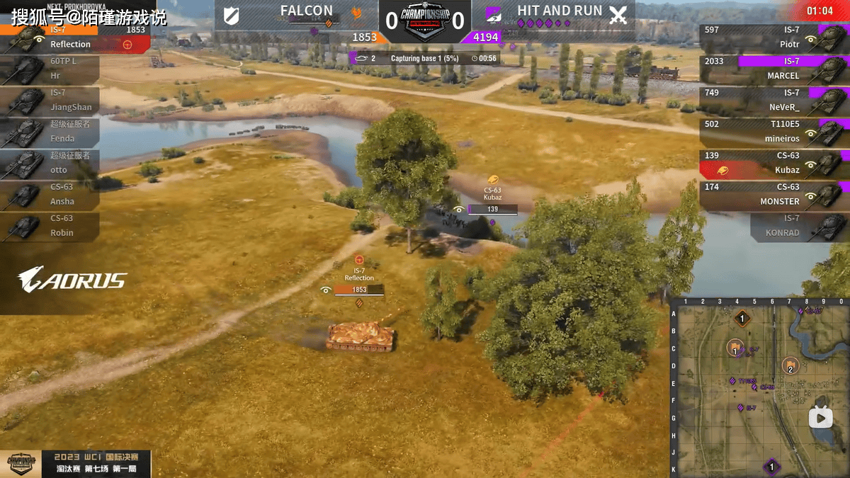 在官方发布的这些调剂视频里面,最抽象的莫过于调侃ONEONE指挥,国服知名老将老刀的“CS-63”名场面了。这个梗的来源是2023年首届WCI比赛中,当时还在FALCON的老刀驾驶1800血的IS-7被丝血CS-63反杀的事情。