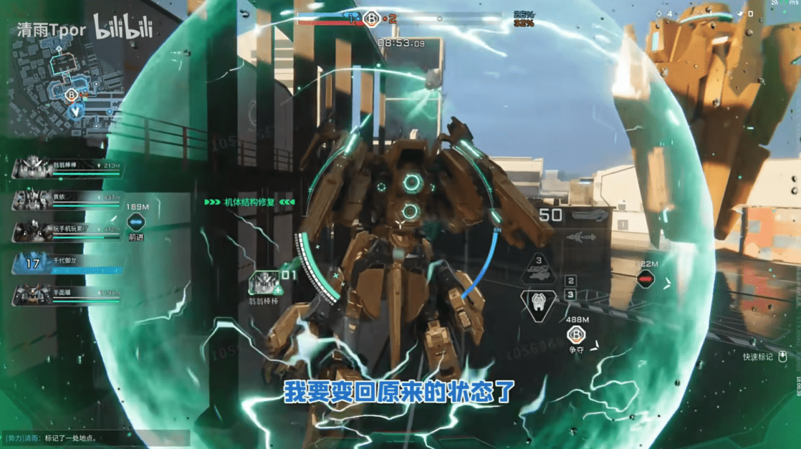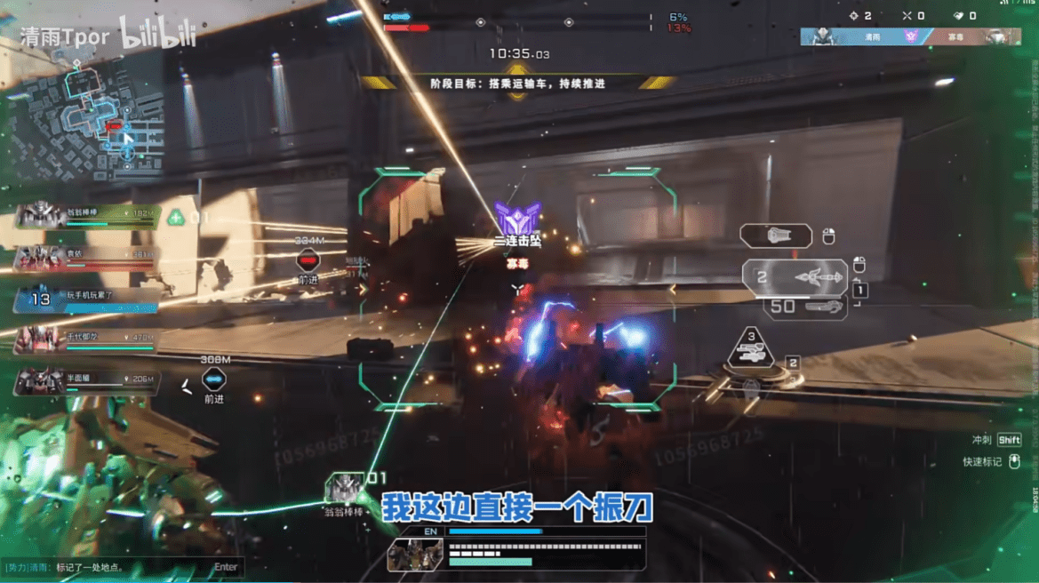 就比如之前一直玩永劫无间的清雨Tpor也开始沉迷开机甲,他甚至做到了在战场中嘎嘎乱杀,仅单场战斗中就拿下好几次二连、三连击坠成就,光人头就收了15个,最后结算直接全场最佳,此时不少玩家惊讶玩永劫竟然可以无门槛过渡到《解限机》?随着越来越多的UP主加入进来,大家开始疑惑机甲游戏的上手门槛是不是本来就不算高?
