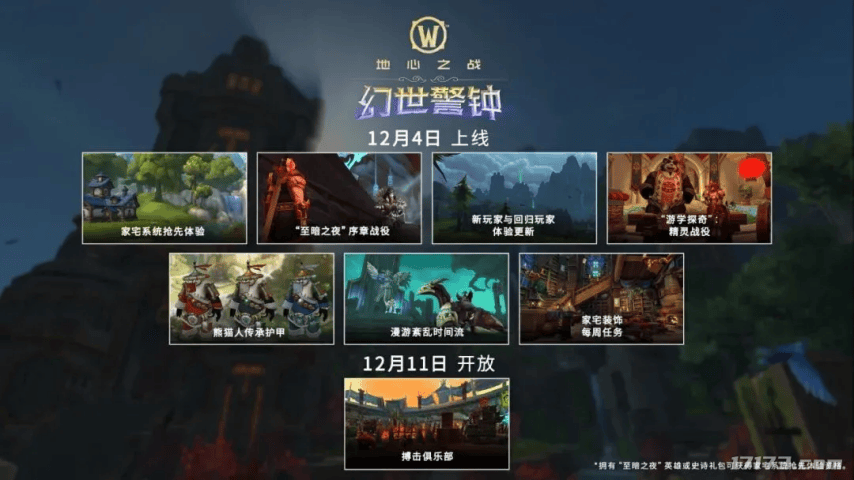《魔兽世界》12月4日将会更新11.2.7版本“幻世警钟”,开启至暗之夜序章!体验家宅系统、新战役、熊猫人护甲、限时地下城等丰富内容,备战史诗新篇章!