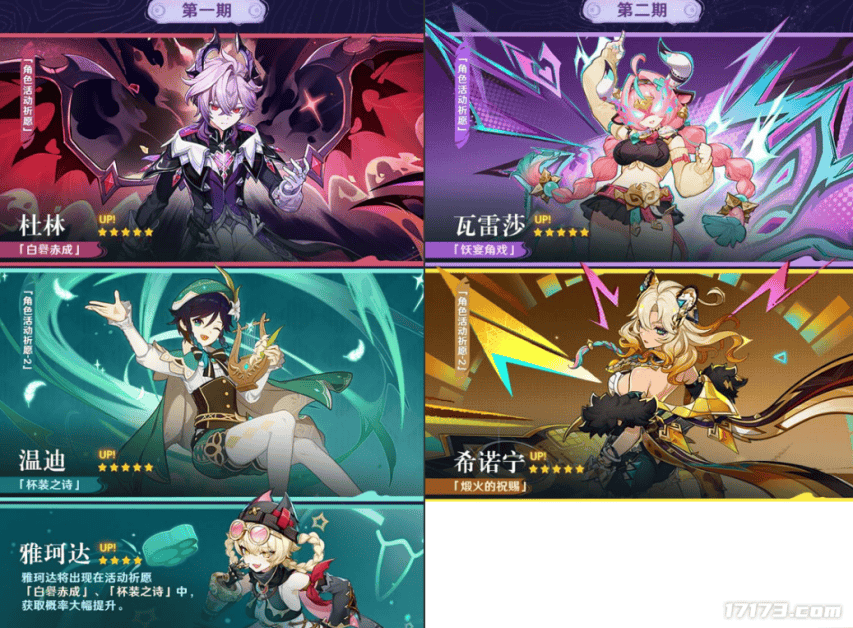 在6.2版本中,卡池分配为上半杜林+温迪+四星雅珂达,下半为瓦雷莎+希诺宁。