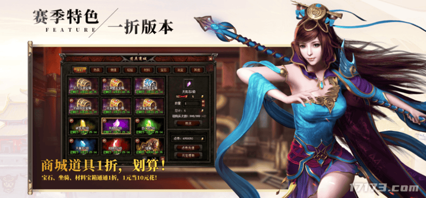在全新推出的一折版本中,可以享受GM无限商城:1折购买宝石、坐骑以及其他材料,还可参与各类以城战PK活动为主以赚取点券奖励!