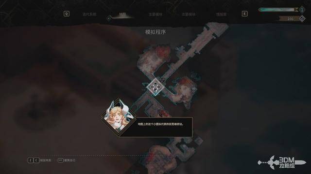 拿到这个道具后会触发教学,现在我们可以按TAB键打开地图,传送到中间的存档点。到存档点后往左边走,去获得另一个开门的钥匙。