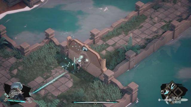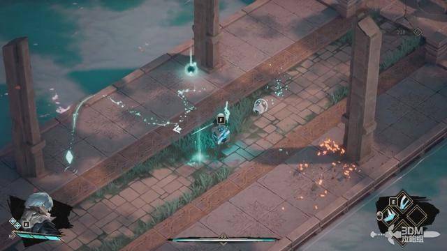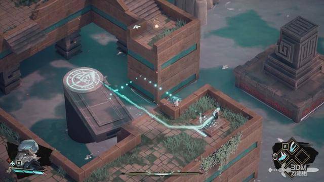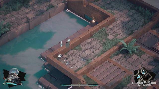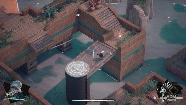 往前走击杀掉前面的一个敌人,我们踩石板上来,上来后踩下面的石板传送到对面。