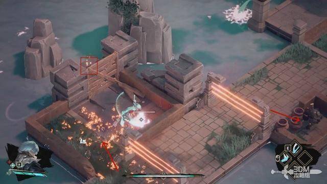 后面两个激光可以进旁边的凹槽处躲避,第一个木板后面还有技能点数拿。