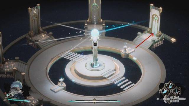 对话结束后和中间的柱子互动一下,反转过来后进上面的房间。