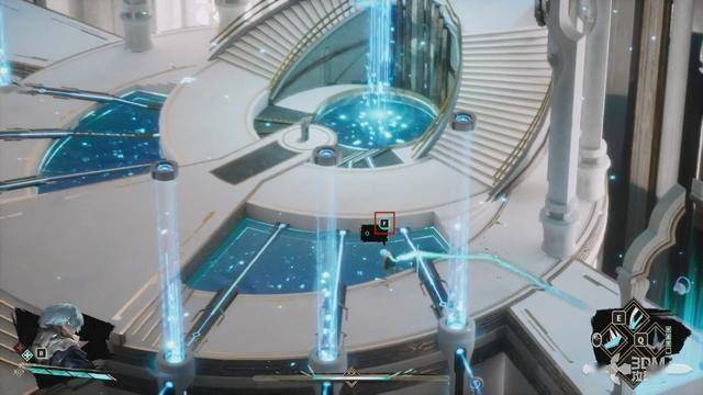 解决掉这个机器人,继续往前。前面有一个类似“眼睛”的机器,我们按F查看,会放大视距给我们看清周围的环境,方便我们解密。