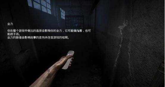 这种设计直接表现在游戏的很多环节设计中,相较于其他恐怖题材作品中简单直接地采用暴力方式去对抗未知的风险。虽然《A.I.L.A》中也提供了凶括枪、斧等多种不同的武器。但让人最印象深刻的地方在于,你如何去选择面对会直接影响整个故事的走向和结局,这种贯穿在整个游戏过程中的因果关系在游戏中被称之为“业力”。