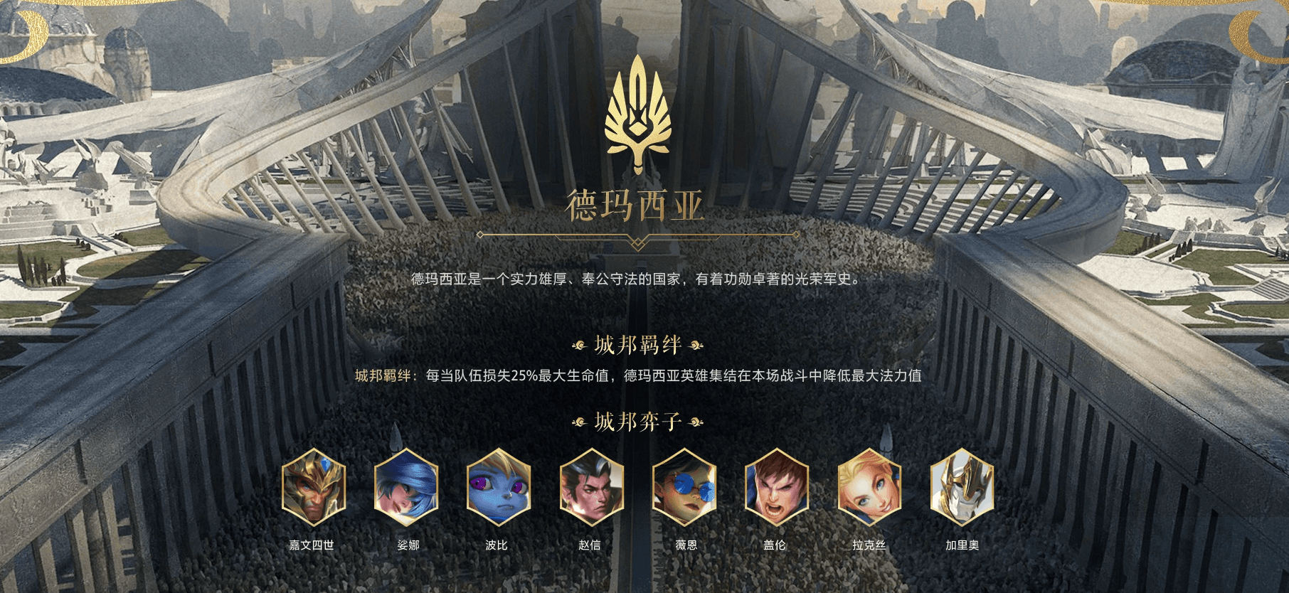 英雄的史诗离不开孕育他们的土地,随着百位英雄的集结,符文之地十三大城邦的版图已完整展开。本赛季还原了各个城邦的独特底蕴,带来了13个风格各异的羁绊。