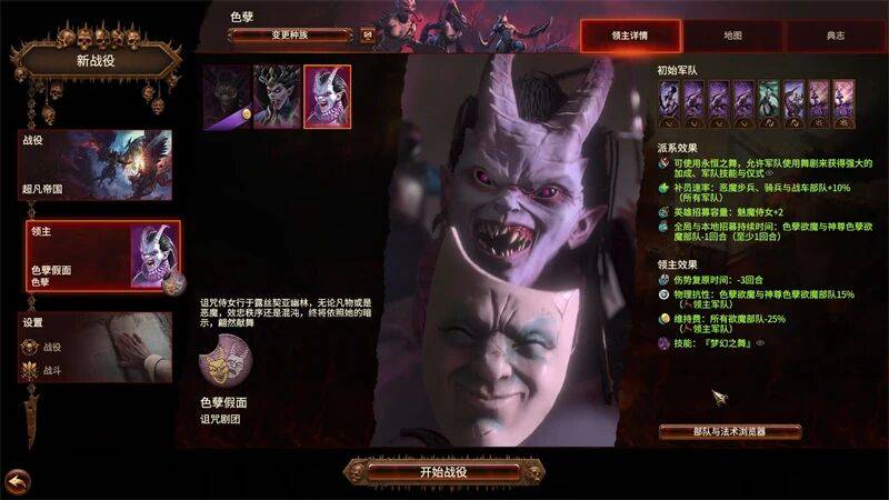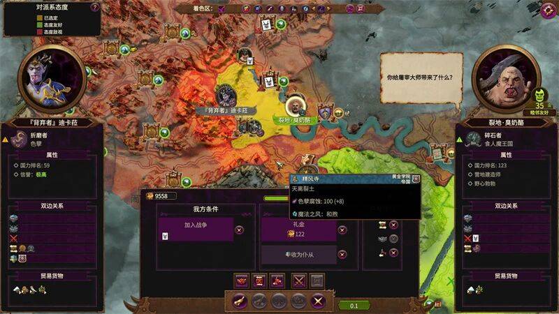 本次DLC新增的3个派系似乎都有一个共同特色——让玩家在经济建设部分将注意力集中在少量城市上。而色孽派系新领主“背弃者”迪卡菈在城市建设方面的独特机制是“欢愉宫殿”。玩家仅能在行省首府建立名为“欢愉宫殿”的城市,该城市集中了招募各色兵种和经济建设等完善功能。但在将一座“欢愉宫殿”升至三级之前,玩家不能建造其他欢愉宫殿。