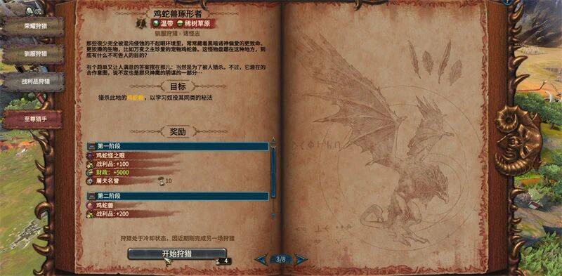 诺斯卡另有一项派系特色机制——“诸怪志”。玩家可以挑战诸怪志中记载的各种怪兽,每个怪兽都有经过设计的专属战斗,指挥军队取胜后可解锁装备奖励,也可将该诸怪志怪兽加入招募池,作为精英部队招募。