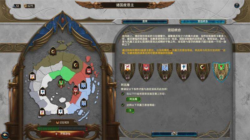 还要说明的是,高等精灵的整体玩法也将随着版本更新进行调整,新增了“诸国度恩主”机制。该机制有些接近帝国选帝侯,允许玩家花费“影响力”争夺高精灵岛上各位置的“恩荣”。在夺取特定地区的恩荣后,玩家可以直接合邦一位传奇领主。